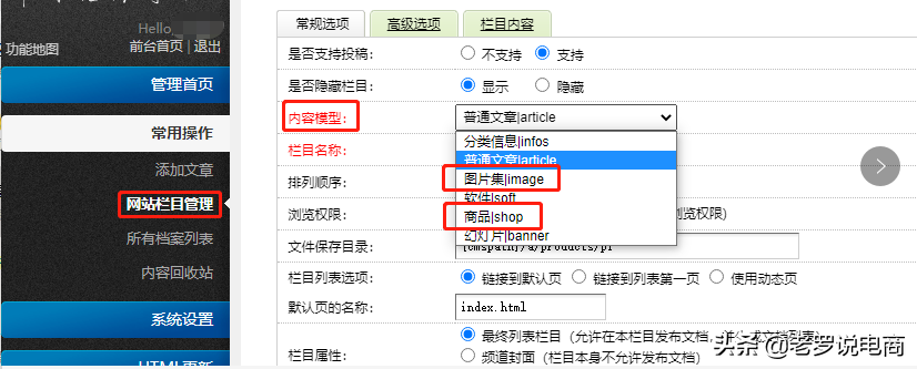 1.5 选择产品类型(对应CMS产品页面的内容模型,暂时支持商品或图片集)