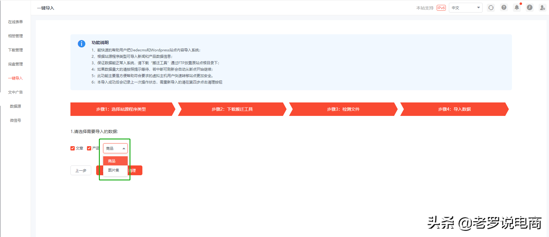 能快速的帮助用户把Dedecms和Wordpress站点内容导入系统。