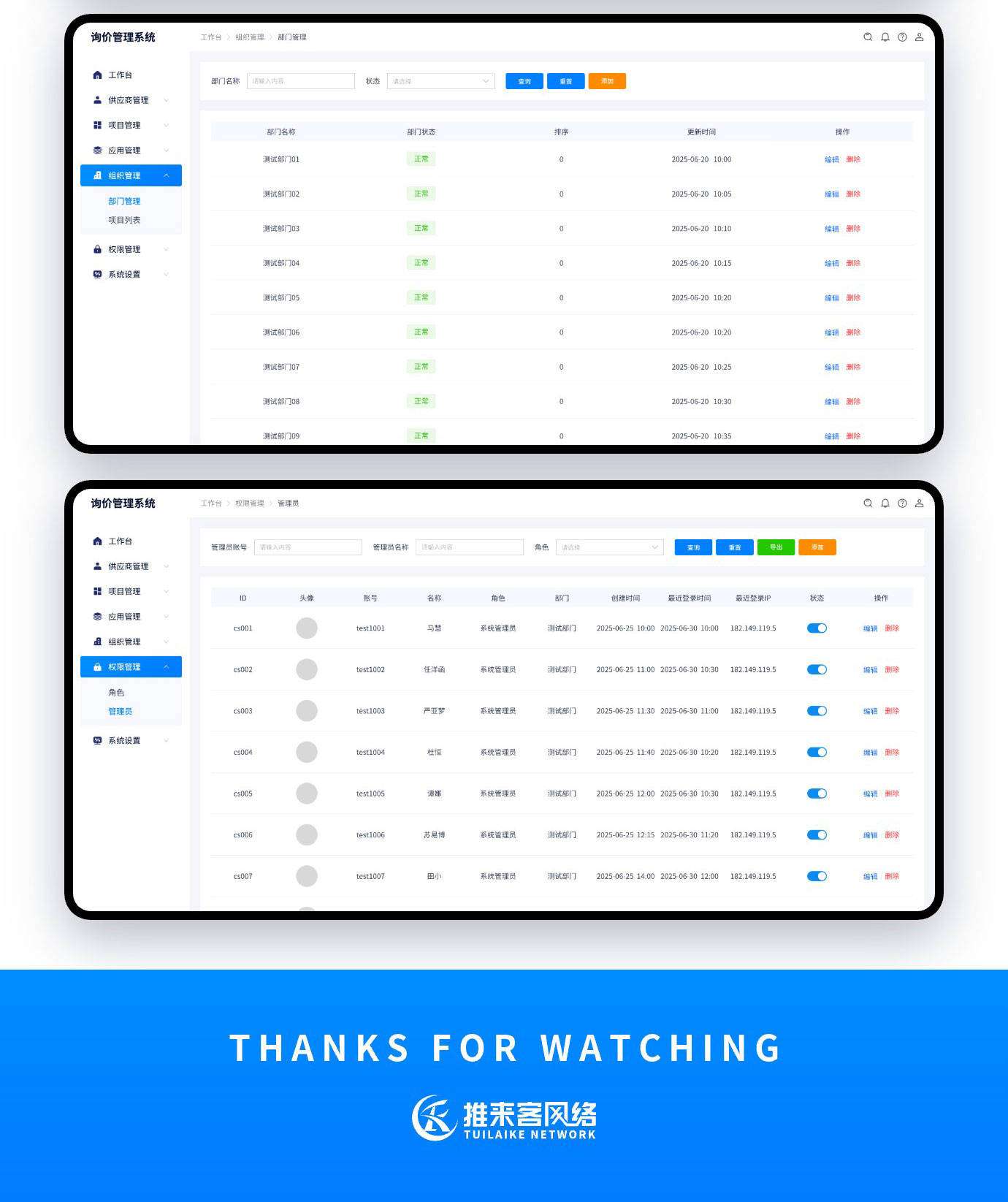如果你有询价管理系统开发的需求。可以搜索“推来客网络”联系我们联系我们!十余年开发经验,每一个项目承诺做到满意为止,多一次对比,一定让您多一份收获!