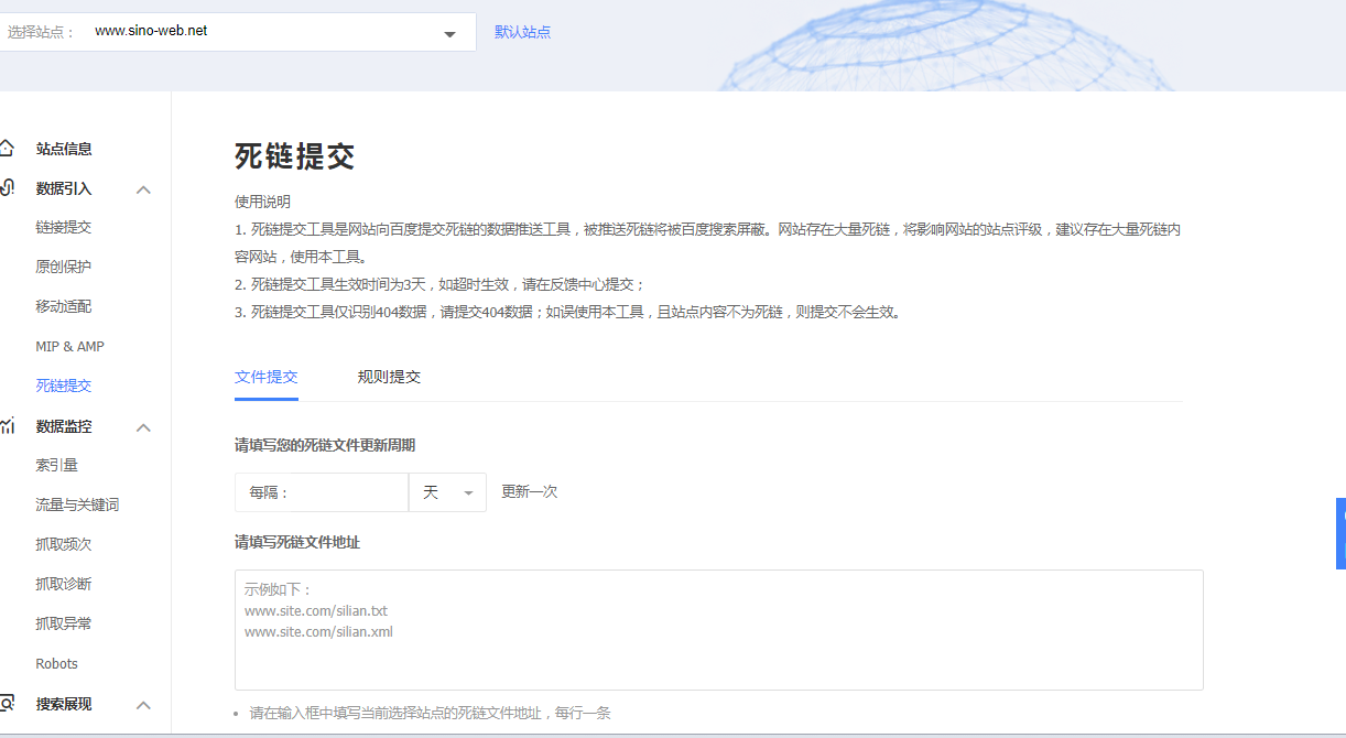 第四步,提交死链接。本地创建一个文本,可以将文件命名为silian.txt,然后将网站的所有死链接写入这个文本文件,写一行,然后点击提交。