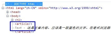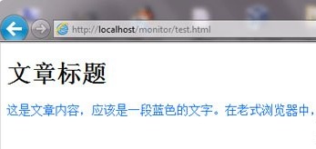 我曾经做过一个测试(以IE8为例),是一篇文章标题和文章内容用蓝色文字,文章内容使用了article标签。代码如下: