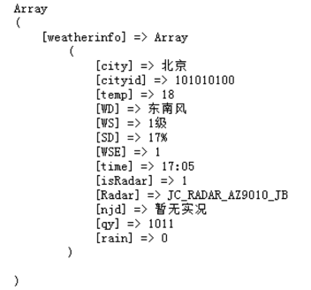 当你旗下的两个网站需要一个可以互操作的数据来共享时,你需要一种访问方式(这种数据一般可以公开播放,也是需要发布给其他用户访问的信息),当当需要跨域时,需要使用服务器语言获取(php、java等)。如果你还是坚持使用javascript,觉得它在速度上有优势,请使用jsonp(记住jsonp的格式和json是不一样的,前面有个函数)。调用接口必须有接口地址。我们使用网上免费的天气预报界面,只是为了学习界面的使用,不保证其准确性。目前,确切的接口已经收费。我查到的免费地址是:http://www.weather.com.cn/data/sk/101010100.html。让我们使用这个地址来完成学习。